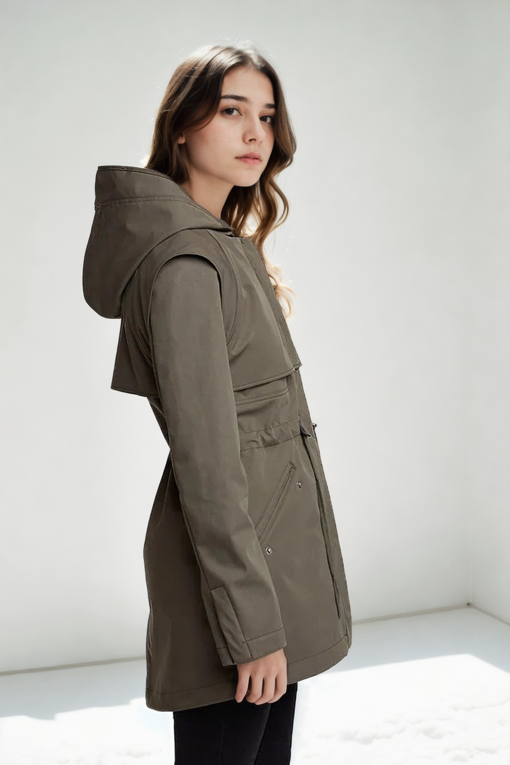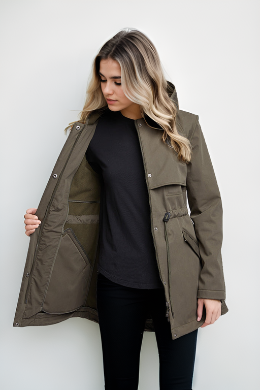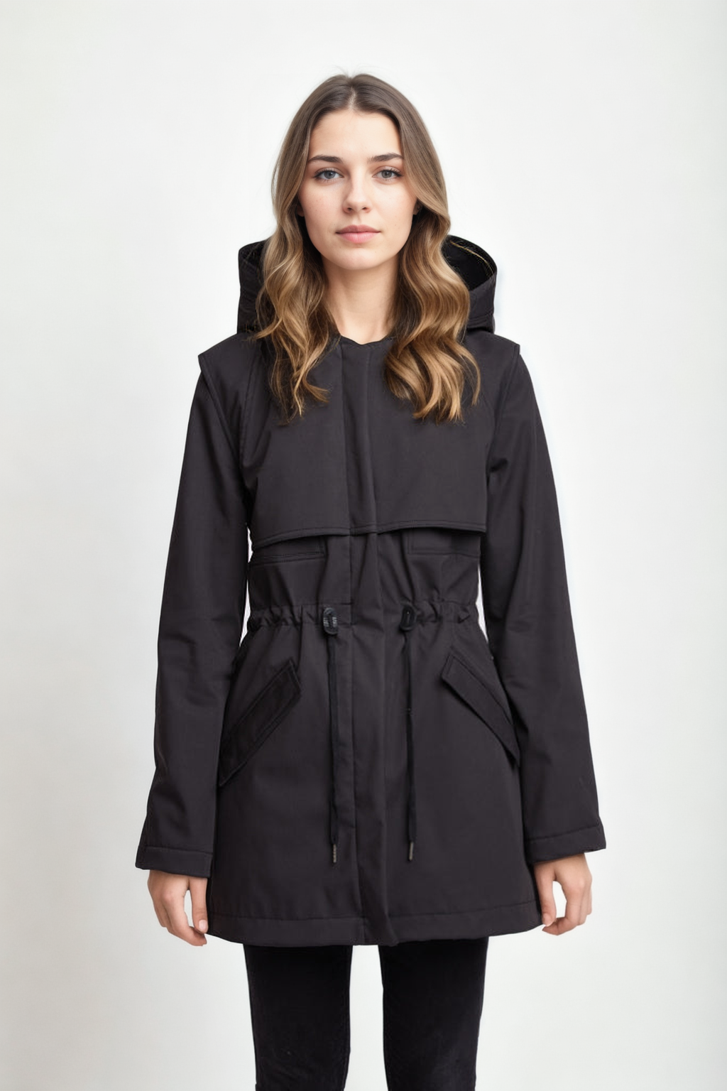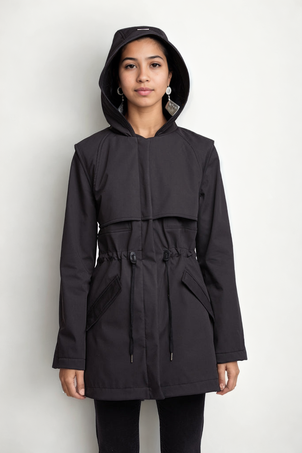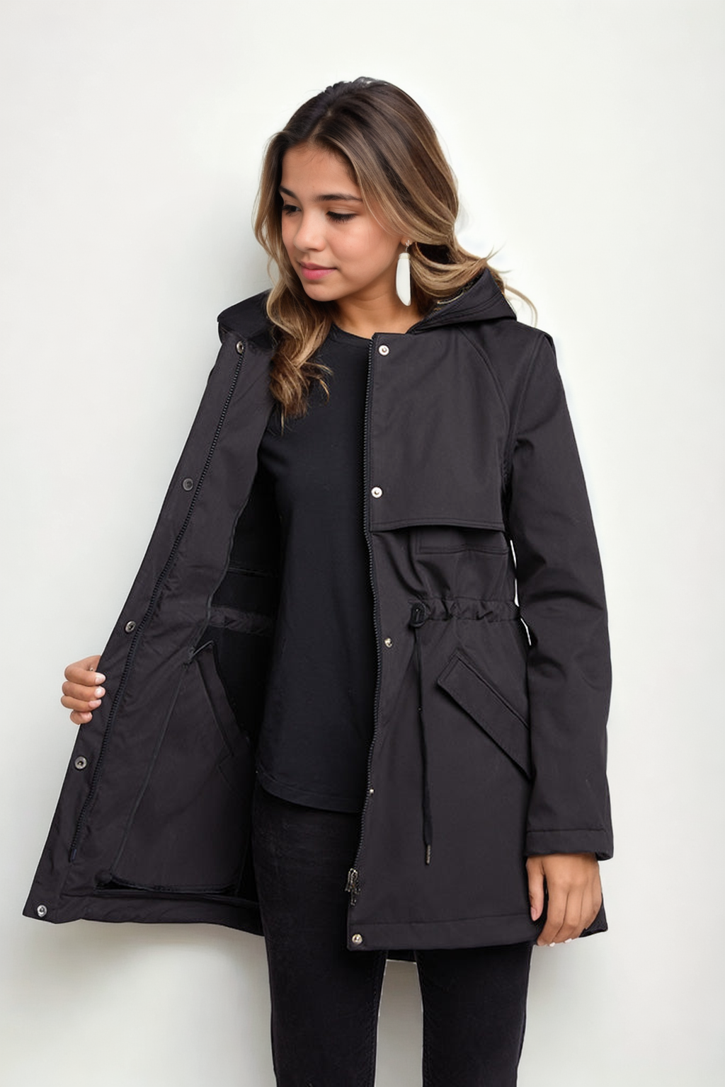 The Provocateur isn’t just about protection—it’s about making a statement. With a sleek 2-way zipper front closure and double-layered shoulders, this jacket is built to turn heads. The cozy microfleece-lined flap pockets and attached hood with microfleece lining add comfort, while the drawstring waist with faux leather toggles flatters your figure, making this coat as chic as it is functional.
